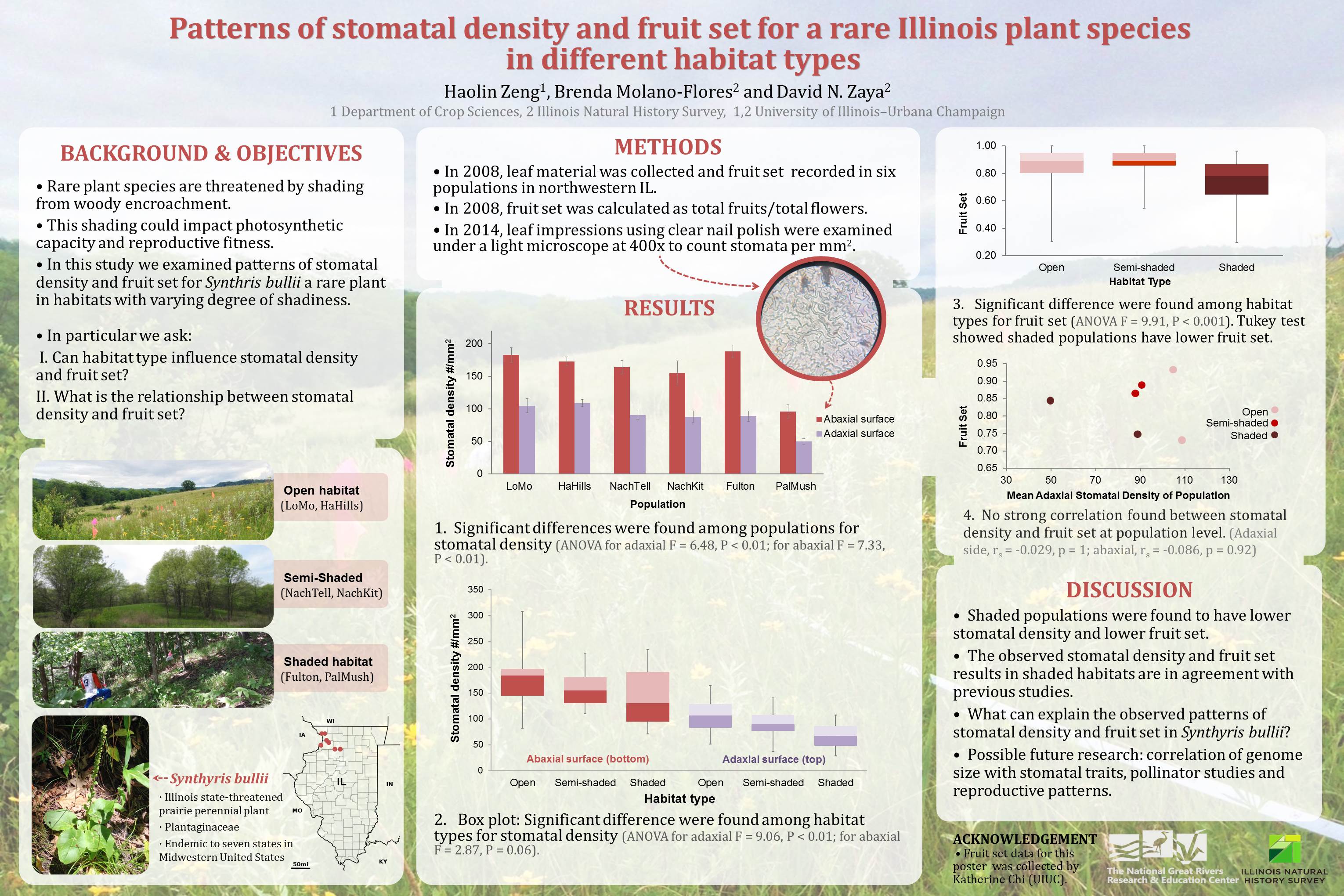Summer research 2014: with Dr. Molano-Flores & Dr. David Zaya, The relationship between reproduction, photosynthetic traits, and genome size for a rare Illinois plant species along the Mississippi River”