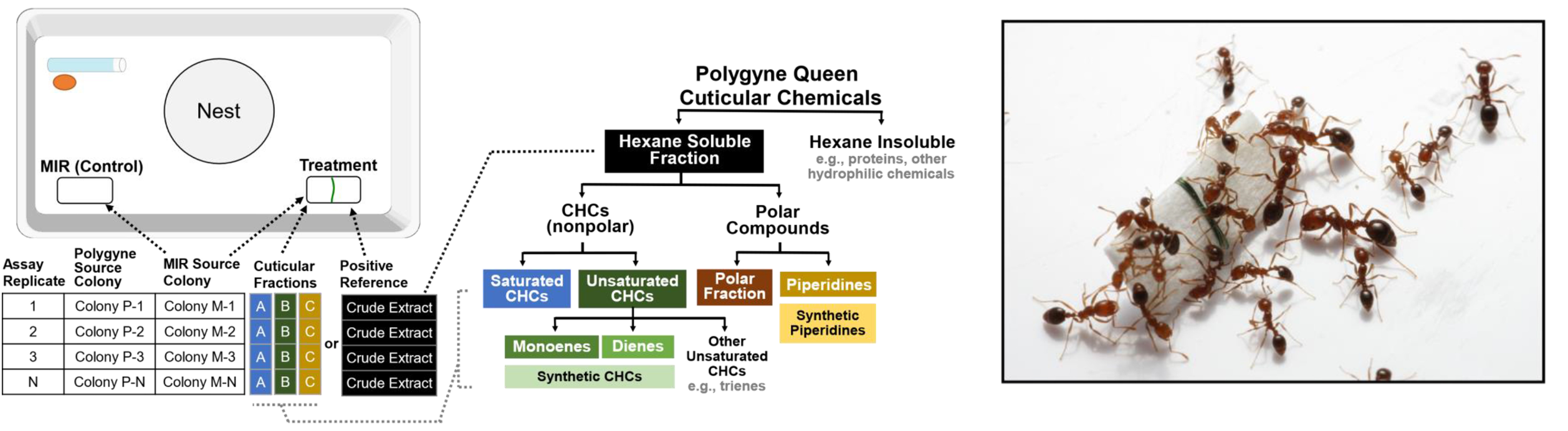 Zeng H, Millar JG, Chen L, Keller L, & Ross KG. (2022). Characterization of Queen Supergene Pheromone in the Red Imported Fire Ant Using Worker Discrimination Assays. Journal of Chemical Ecology, 48(2), 109-120.
